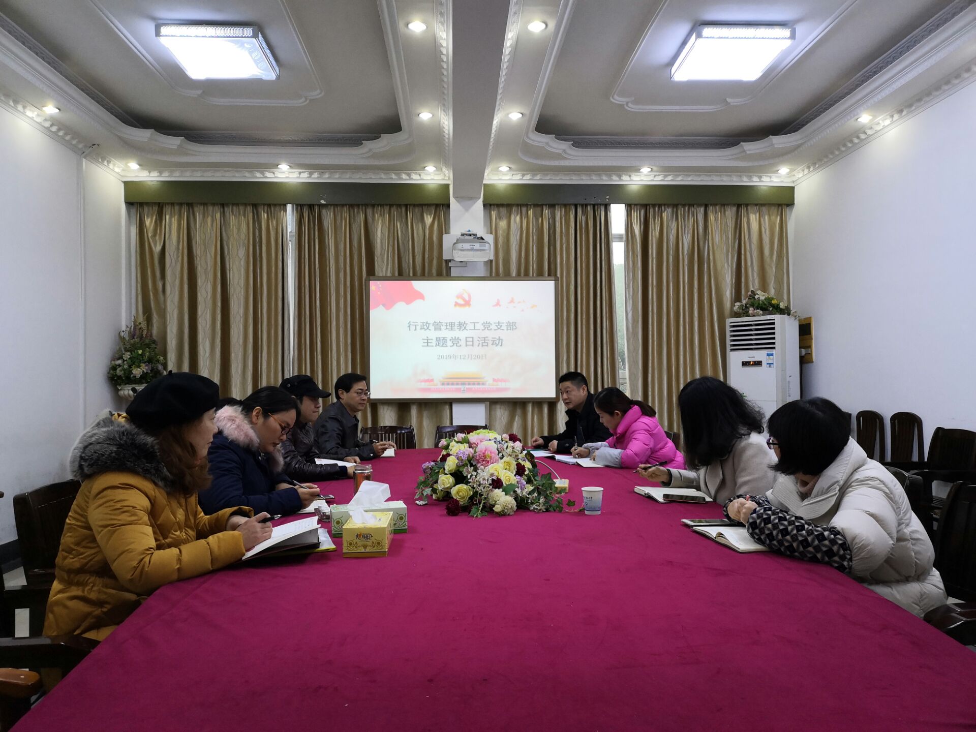 • 12月20日上午9:00,行政教工管理支部全体党员在美术楼203组织了主题党日活动。本次活动主要围绕两个方面进行:一是支部组织委员周薇同志就全年党费收缴情况向大会做了汇报。二是支部书记胡鹏同志带领全体党员学习了《中央八项规定》、《六项禁令》、《中国共产党廉洁自律准则》、《基层党员如何贯彻落实中央八项规定精神》、《中国共产党纪律处分条例》、《中共湖南科技大学委员会关于进一步贯彻落实中央八项规定精神的实施细则》等廉洁自律方面相关文件,同时提醒全体党员要做到严于律己,筑牢防腐拒变的思想防线,杜绝腐败事件发生。