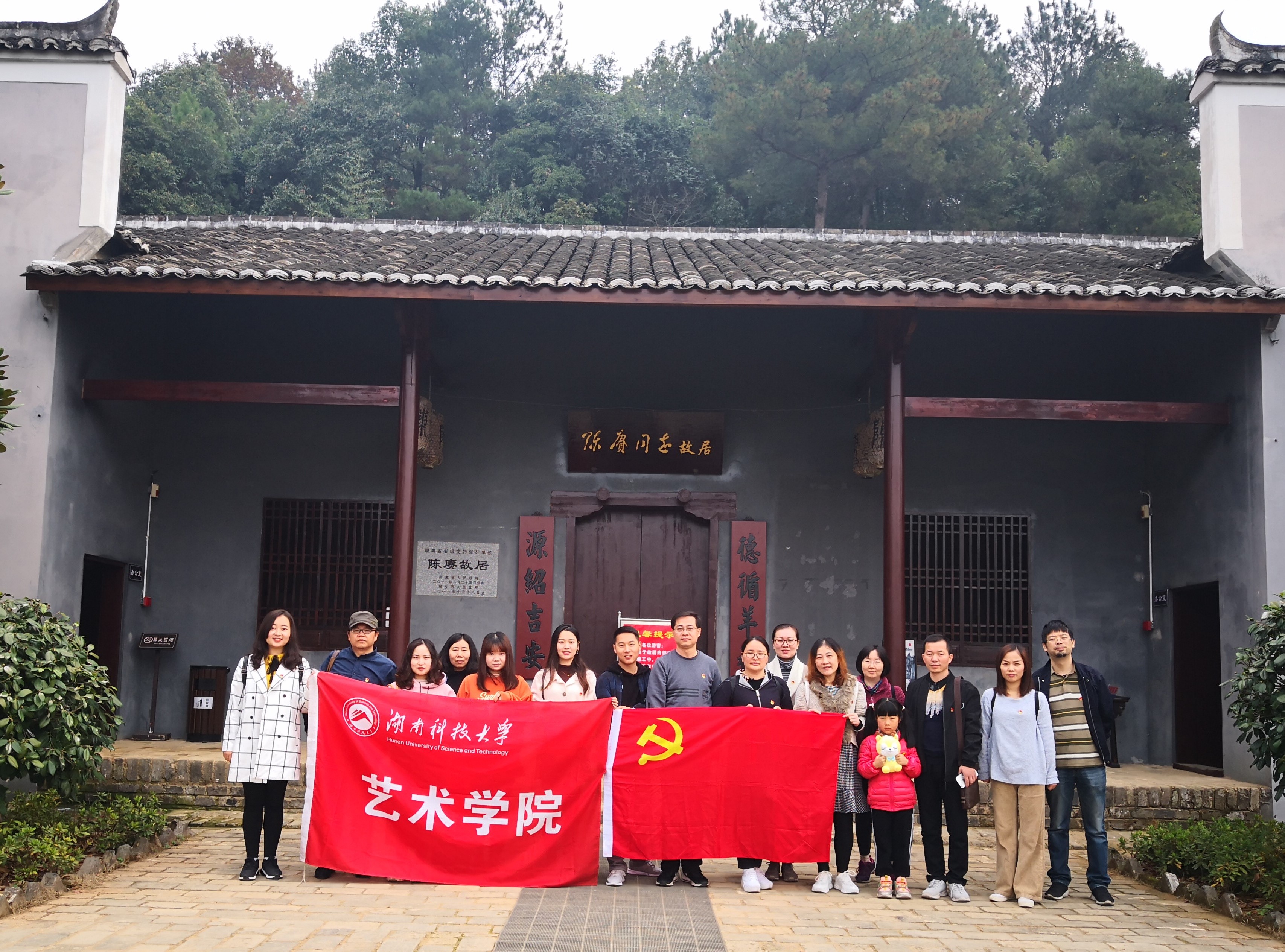 • 11月23日,在湖南科技大学艺术学院党委的组织和领导下,艺术学院教职工党员和学生党员到湖南省湘乡市陈赓故居、东山书院旧址、东台山进行实地考察学习。此次实践活动旨在激励全体参训党员同志“不忘初心 、牢记使命”,积极发挥党员先锋模范作用,永葆共产党员的政治本色。同时进一步加深同志们对中国共产党革命历史、革命传统、革命精神的理解,增强艺术学院党组织的凝聚力、向心力与战斗力。
