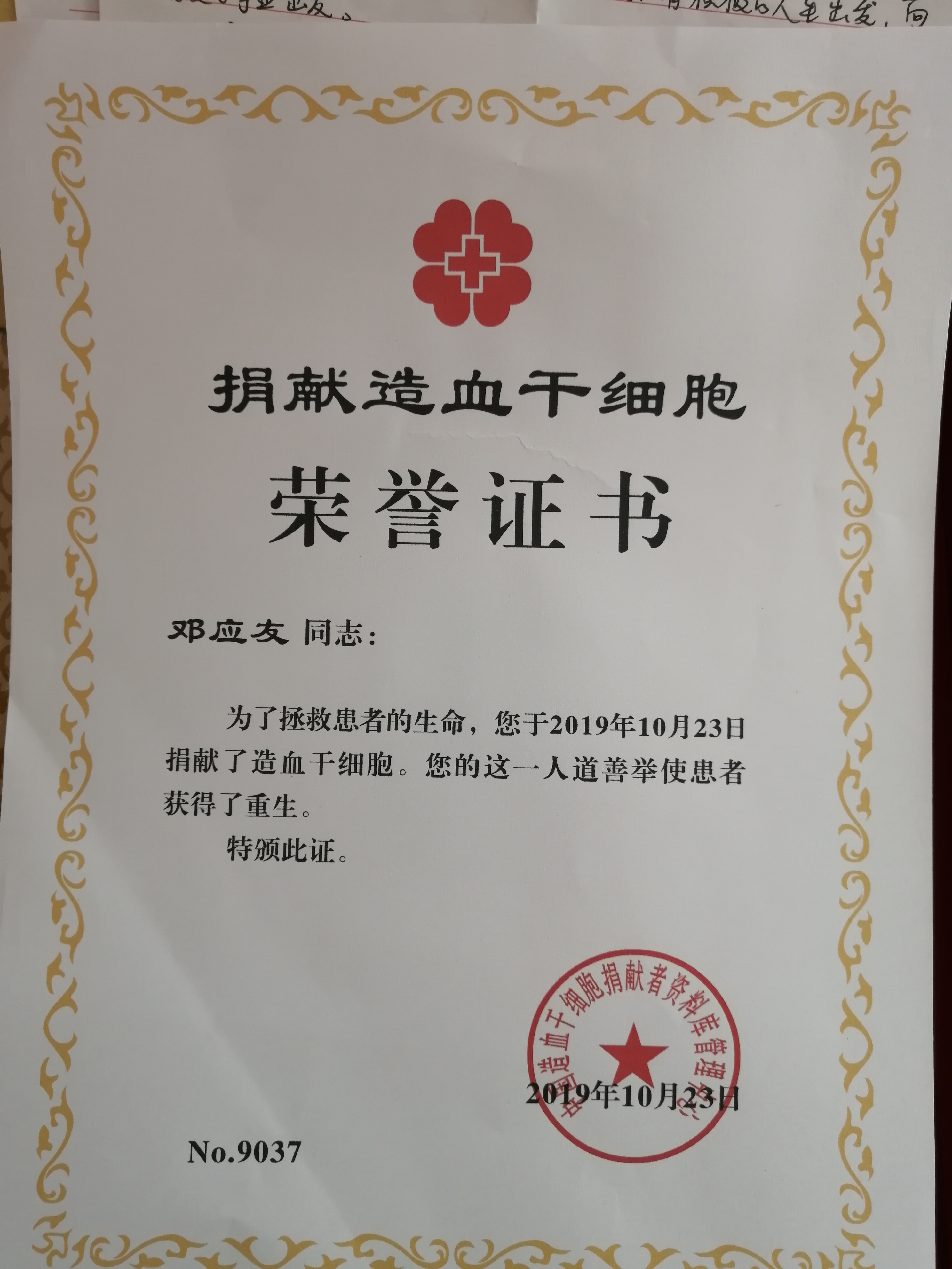 邓友应一直热心公益,在他大一的时候,就参加了学校组织的无偿献血活动,他毫不犹豫地志愿参加了血样采集。半年前,邓应友接到湖南省红十字会造血干细胞管理中心的工作人员的电话,告知他与一名白血病患者的初配结果相匹配,符合捐献造血干细胞的初步条件,并问他是否愿意捐献造血干细胞,邓应友毫不犹豫地答应了。对于捐献者来说,造血干细胞的配型成功的概率很低,一般只有几万到几十万分之一。复配成功后,邓应友于19至22日开始注射动员剂,在采集过程中,经过反复打针、抽血、提取血样,因为钙元素的大量流失,邓应友的手脚及脸部都出现了不同程度的麻木,并伴随着酸痛,邓应友在捐献过程中,每天需要往返长沙、湘潭两地,常常晚上凌晨才开始抽血,第二天早上再匆匆赶回湘潭。10月23号,经过7个多小时的采集,175毫升造血干细胞顺利交付到患者医院方手中。在问及捐献造血干细胞的初衷时,邓应友回答得很干脆:“虽然采集的过程很痛苦,但是自己的贡献可以挽救一条生命、一个家庭,这是一件很有意义的事情。虽然我们互不相识,但我愿意尽我所能,让他开始新的生活。”