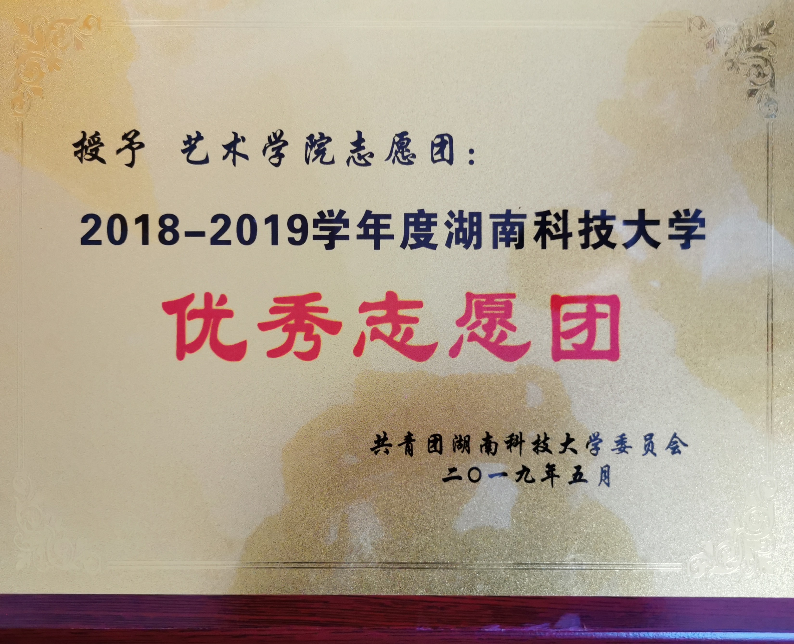 艺术学院志愿团被湖南科技大学共青团委授予“2019-2019优秀志愿团”