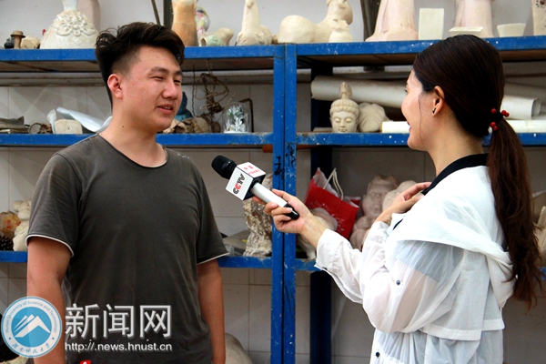6月20至21日,央视新闻记者一行来校采访了我院15级硕士研究生赖庆林。他们参观了赖庆林个人艺术作品展,欣赏了赖庆林部分优秀作品,跟随赖庆林一起见证了其研究生学位授予仪式,并进行了深入访谈。