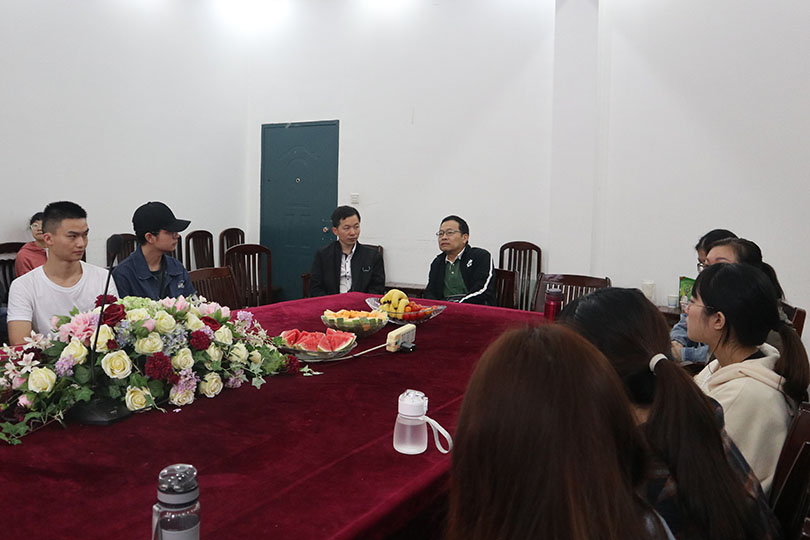 会上,邹正洪首先致开幕辞,他对学生挖掘古村落文化、研究皮影艺术、勇于打破绘画的形式与题材限制提出了赞赏,他认为学生作品具有现实主义的视角和浪漫主义的情怀。并且希望同学们能潜心创作,积极为第十三届美展做好准备。随后,龚畅与杨薇先后发言,他们强调了创作过程中画面整体与细节的把控的重要性,并希望同学们能一直保持这份创作的热情坚持至毕业。王洪斌在会上提到,他认为艺术源于生活也高于生活,每位创作者都应该不断培养自己发现美的能力,并运用到自己的创作当中去。接着,学生代表唐萌同学发言,她对本次画展内容进行了相关讲解,她指出,本次实践主题在于呼吁人们关注古村落的文化,要把实践转为更深的艺术创作,需要不断加强自然关怀。
