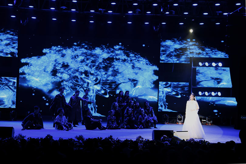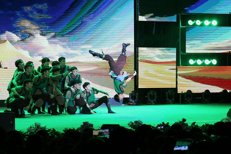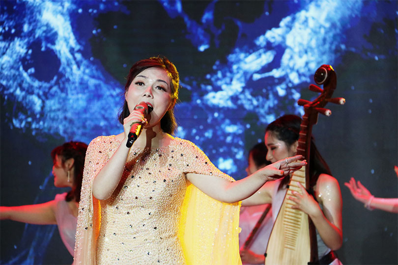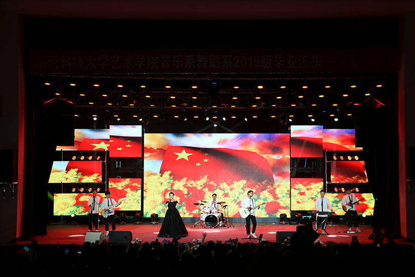 晚会以歌舞表演《阳光路上》拉开帷幕,藏族群舞《天浴》向观众展现了清灵优雅的民族特色,衣袖舞动,灯下曼姿,台上的舞者仿佛一个个跃动的精灵。男声四重唱《库斯克邮车》音色各异,却又相互融汇,勾起了在座所有人深藏心底的怀念,展现了深厚的同窗情谊。此外,两位老师友情参演的多重器乐合奏《炫境》可谓是精彩绝伦,中西乐器衔接自然,加上舞美、灯光的设计,营造出活跃灵动的氛围,收获了台下观众满满的掌声。乐队表演《我爱你中国》描绘了一幅清晰的时代画卷,抒发了所有音乐人对祖国的深切爱恋。落幕曲是由15级全体毕业生带来的大合唱《城南送别》,歌声动人心弦,令人热泪盈眶,更是展现了同学们对大学时光的依依惜别之情。