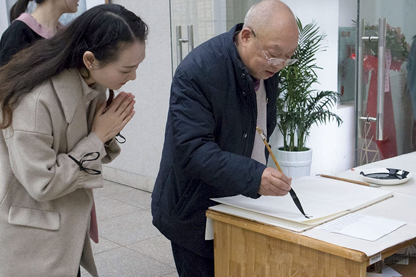 12月19日上午十点,由湖南科技大学艺术学院、湘潭市女画家协会主办,一方文化传播有限公司协办的“逍遥艺行-----肖瑶工笔花鸟画作品展”在美术楼展览厅隆重开幕。莅临开幕式的嘉宾有湘潭市美术家协会主席,齐白石纪念馆馆长王志坚、湘乡市人大主任陈继东、艺术学院原院长曾景祥、艺术学院院长李毅松、党委书记曾志东、副院长文牧江以及美术系相关专业教师。本次开幕式由文牧江主持。