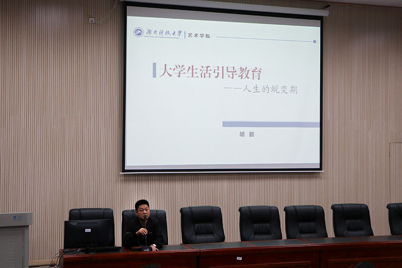 10月15日下午1:30,湖南科技大学艺术学院18级大学生引导教育大会在美术楼104报告厅顺利召开,我院党委副书记胡鹏出席会议,18级全体同学到场参加。
