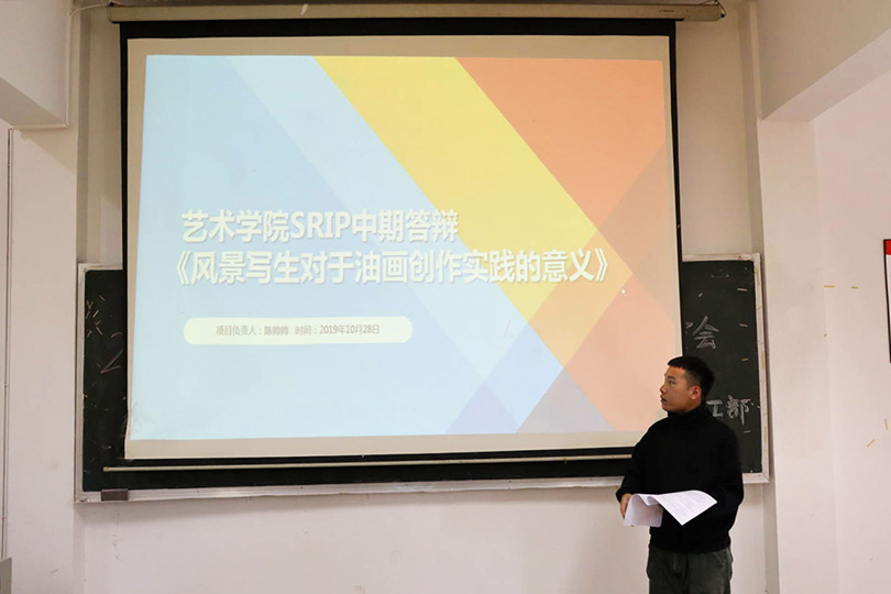 10月28日,湖南科技大学艺术学院SRIP中期项目《风景写生对于油画创作实践的意义》答辩会在美术楼203教室顺利举行。艺术学院党委副书记胡鹏、学工办主任殷俊、辅导员龙睿出席此次答辩会,此次项目主讲人是我院17级美术学二班陈帅帅同学。