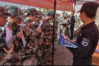 活动上,新生们在教官的带领下有序排成长队,认真倾听宣传人员解说反邪教相关知识。反邪教宣传资料和标语,让他们学到了许多反邪小知识,他们在反邪教宣传横幅上签名留言,表明了坚决抵制邪教的决心。