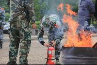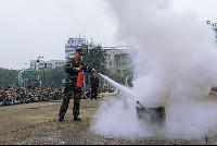 随后,消防演练转移到训练场地,九华消防员代表为同学们普及灭火器的种类、使用方法的相关消防知识。紧接着进行了灭火演示,并让部分同学进行实际操作。同学们也很积极地参与其中,很快就学会了灭火器的使用。