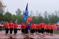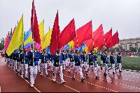 伴随着激昂的进行曲各学院方阵队有序入场,我院运动员们身着红装,青春四射;步伐坚定,锐意昂扬。在校长李伯超等人发表讲话之后,运动会的表演节目正式开始。