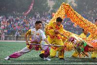 首先是教职工的舞蹈,老师们挥动扇子随着音乐翩翩起舞,温柔而优雅,柔美而靓丽。我院舞蹈系的表演更是让人应接不暇,他们时散时集,仿佛跃动的精灵,飞舞的绸缎与鼓声交融,古典而优雅。他们独具青春与活力,配合默契,舞动艺术的色彩与魅力。舞龙舞狮的表演可谓生龙活虎,威风凛凛。栩栩如生的龙狮成为全场瞩目的焦点……