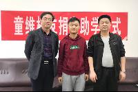 受资助的学生代表发言,表达了对校友童维的感谢和发奋学习的决心,他们表示将不会辜负热心校友对他们的期望,一定会勤奋学习,将来回报社会,回报母校。