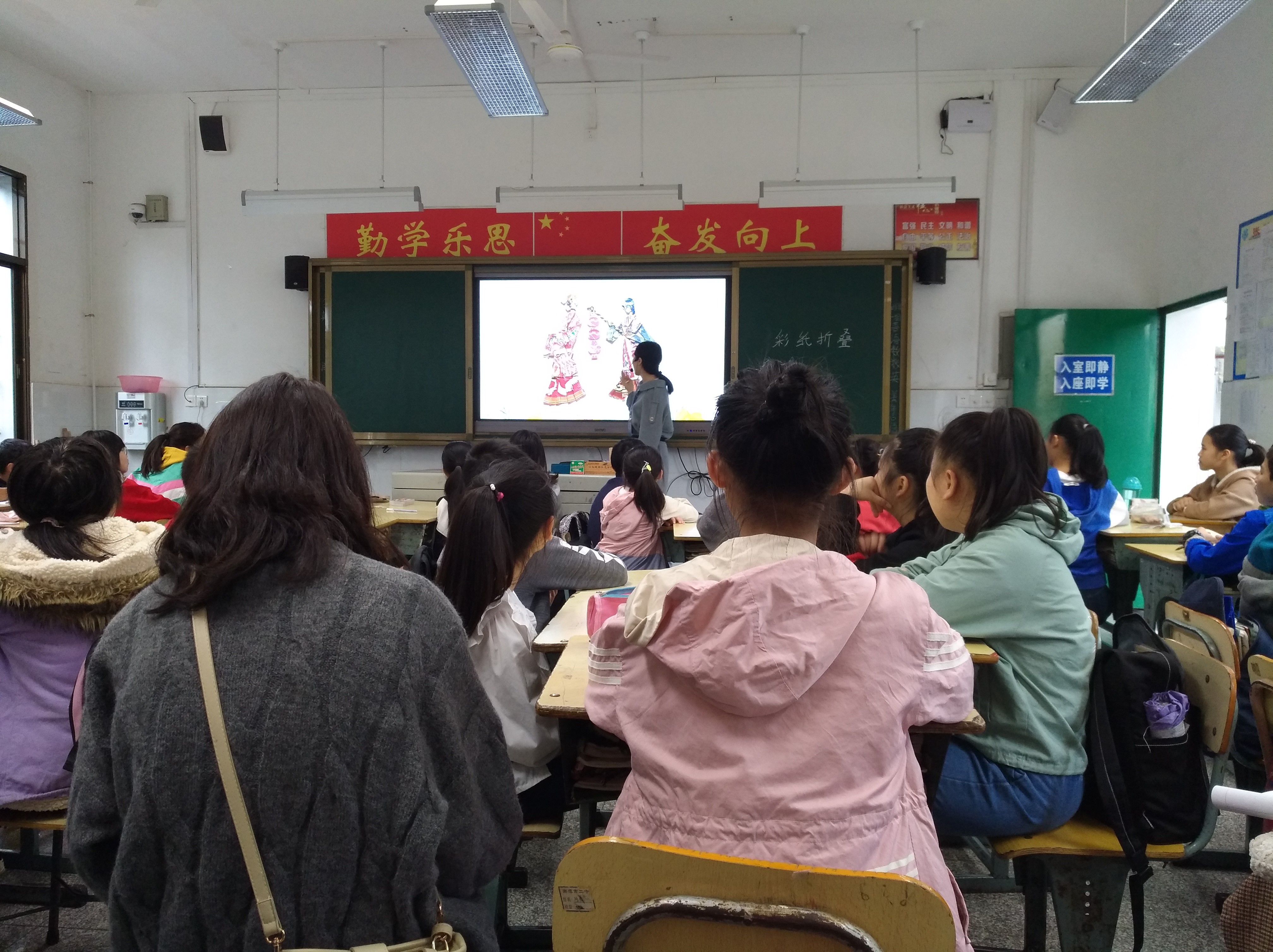 首先在二中指导老师的陪同下,师生们一同观摩了实习老师李媛媛的工艺美术特色课程——《彩纸折叠》。课堂上,李媛媛老师不是讲授的课本上的美术课程,而是根据在学校教育考察课程中所学到非遗文化“彩纸折叠”开发成中学美术课程。把“彩纸折叠”作为课程主题,引导学生思考各类彩纸作品的意义及内涵,并向学生教授了彩纸折叠的方法。给大家展示了一堂别具特色的美术课程。课程结束后,实习带队老师龚畅组织了评课以及实习工作交流会。