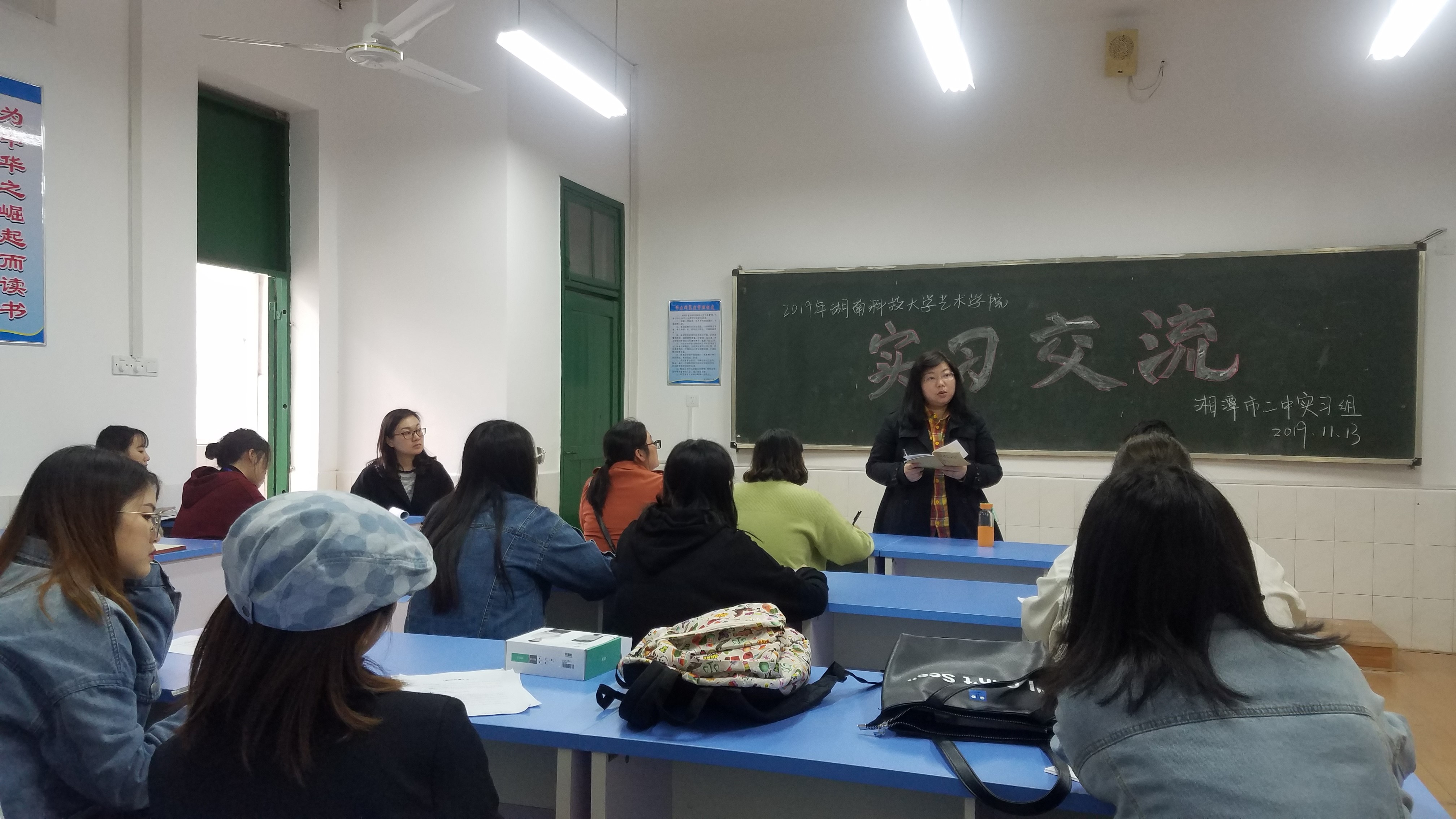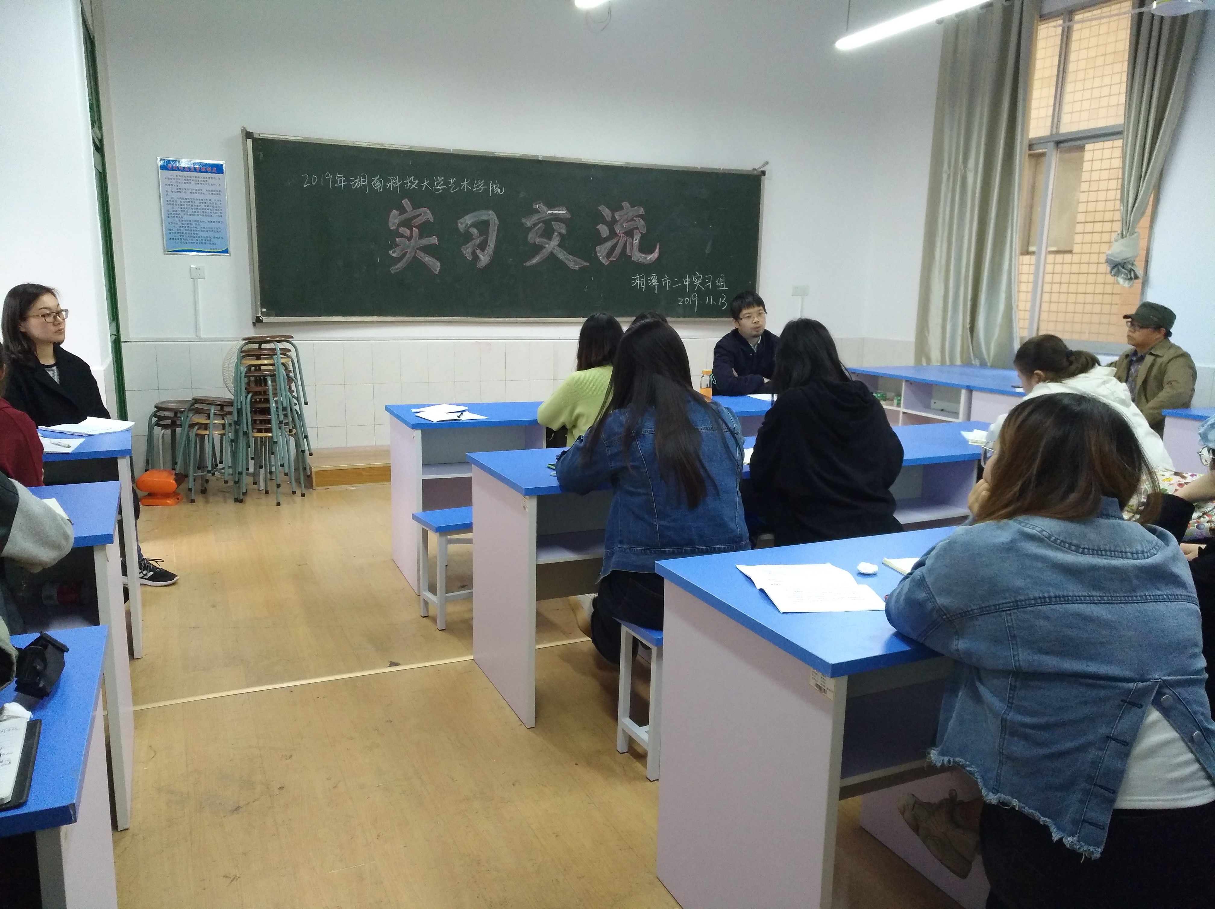 美术系主任雷永明老师指出:“在当实习老师的过程中,你们有两重身份,一重是老师身份,一重是学生身份。要在管理课堂纪律方面,合理运用解决问题的办法,和学生达成良好的师生关系,以身作则教导学生。希望同学们在最后的两周抓住机会突破自己,获得真知。”