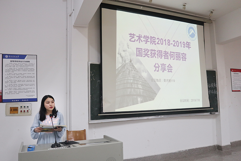 7月8日,艺术学院2018-2019国家奖学金获得者何丽蓉的学习分享会在美术楼114教室顺利进行,辅导员麻琪方出席本次分享会,18级迎新志愿者参加了此次会议。