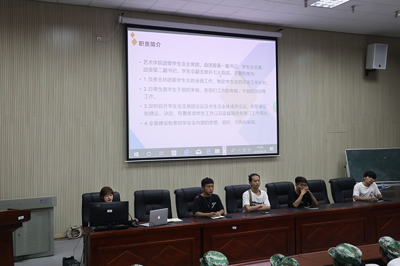 9月20日下午一点,湖南科技大学艺术学院学生会各部门介绍大会在美术楼举行,第二十四届学生会主席团成员,各部门部长、副部长、2019级新生出席并参与了本次大会。