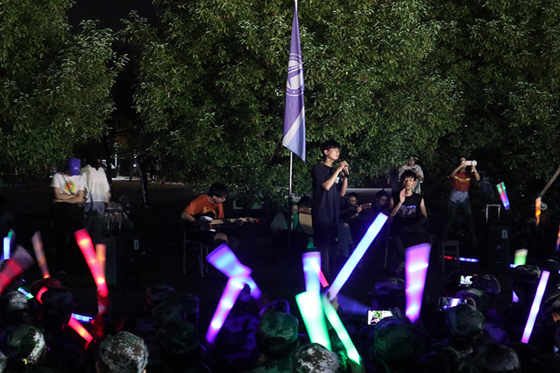 秋空明月悬,桂香中秋节。为了丰富新生的军训生活,与大家共度节日欢乐时光,若兰琴馆于9月13日晚在第一田径场举办了军训慰问演出,迷人的歌声时而青涩缱绻,时而动感激昂,展现了无限的青春与活力,在场的观众笑脸洋溢,现场气氛热烈,此次慰问活动不仅为新生的军训生活带来了欢声笑语,也充分展现了大学生活的丰富多彩,相信每位新生都将在欢乐的夜晚感受到别样的温暖与归属感。