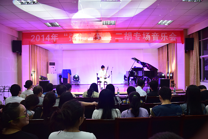 6月11日晚7点30,我院音乐系学生在音乐楼104举办了“弦情雅致”二胡专场音乐会。本次活动由音乐系主办,指导老师为郭小兰,到场的领导老师有我校正校级督导曹晨忠,我院党委书记张琳,副书记罗登辉,音乐系主任彭岩等。