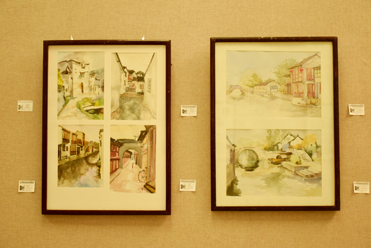本次作品展览内容丰富、形式多样,作品分为多个系列。在老师傅小明的指导下,同学们用水彩、油画、速写等多种形式把江南水乡的自然及人文风景描绘的形象生动。一幅幅绚丽描彩的水彩作品,用和谐的色调把周庄小桥流水的意境描绘地淋漓尽致。而有些同学通过厚重浓彩的油画作品,更是生动地描绘出古镇的空间和光感,给人以视觉上的冲击。写生脱离了原始的室内作画,使学生的作品更富有生动性、技巧性,让学生充分展示了自己独特的艺术风格。