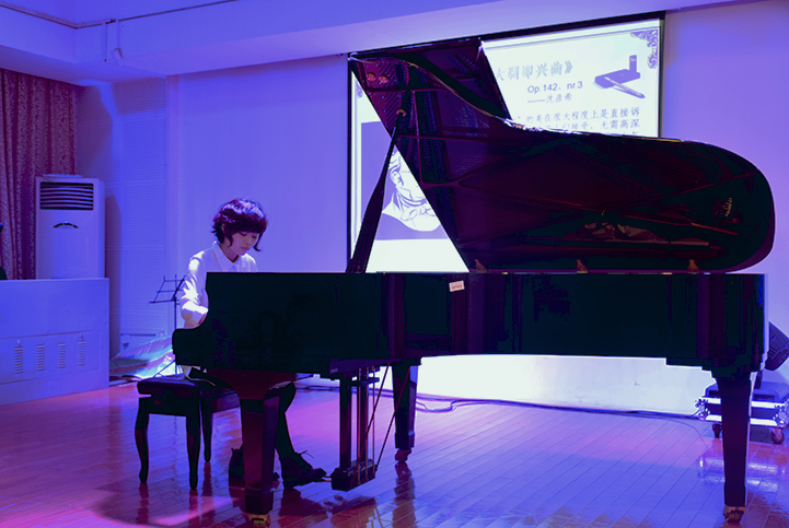 音乐会在sanja老师弹奏的《B小调前奏曲》中拉开帷幕,这首曲子轻盈灵活,随着音符的跳跃,紧扣人心。随后由骆坚毅演奏的《C小调幻想曲》,是一首自由洒脱、极具特色的乐曲,前面的舒缓与后面的高昂形成鲜明对比,充分自由发展主题。紧接着一首《舒伯特C大调即兴曲》将我们带进了刑达所构建的梦幻世界,展示的不仅是旋律美,还有意境美,让听众领略到独特的音乐之美。而一曲由李斯特作曲的《Tre Sonetti di Petraca》No.47在李言一的演绎下,也以极快的速度、辉煌的技巧、狂放的气势,令人为之沉醉。在音乐会的最后,一曲颂扬中国红色政权的《山丹丹花开红艳艳》在彭楚茹的手指下如流水一般喷涌而出,将整场音乐会推向了高潮,也给此次音乐会划上了圆满的句号。