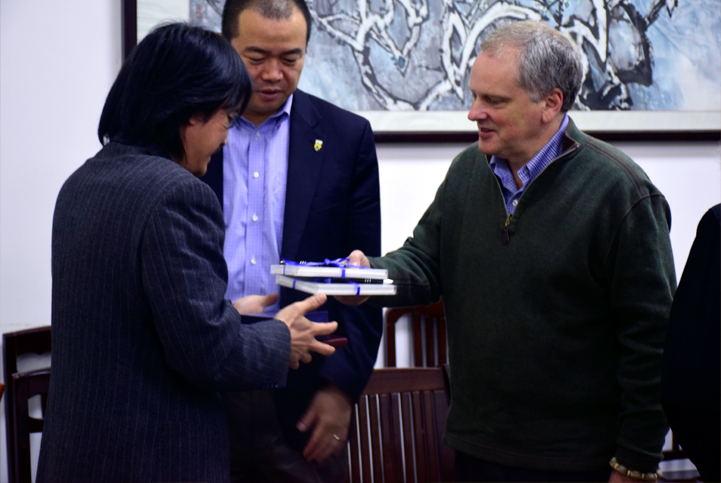 会议最后,双方约定随后会推出可行性的合作报告,艺术、商贸、教育有望成为双方交流的热门学科。会后,双方互赠礼物,合影留念。
