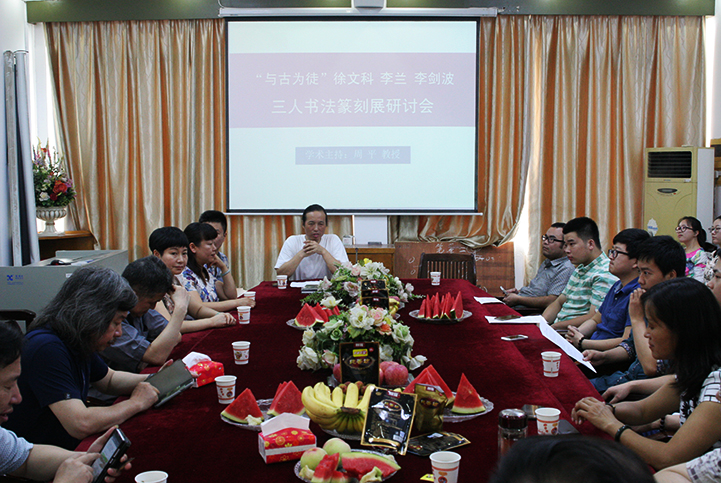 6月23日,与古为徒—徐文科·李兰·李剑波三人书法篆刻展于美术楼二楼展厅正式开展。本次展览持续至6月26日,参展的作品作品由徐文科、李兰、李剑波三名学生联合创作,共计展出20余幅系列书法篆刻作品,吸引了不少书法爱好者前来观赏。