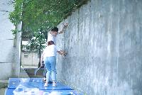 经过一天的努力,墙绘工作的主体已基本完成。预计本次爱心绘墙工作将于本月20日全部完成。