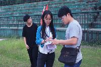 活动开始前,所有到场人员在主席台下集合,由党务部成员向大家说明一些简单的注意事项,并给大家发放各色荧光棒作为鼓励、活跃气氛。集合完毕后是自由活动环节。
