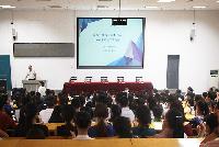 高年级优秀学生代表、二十一届团委学生会主席汤顺鑫、本科新生代表卢鑫、硕士研究生代表李美龄纷纷上台演讲。汤顺鑫学长结合自身经验,向2016级新生就如何合理规划大学生活给出意见建议。