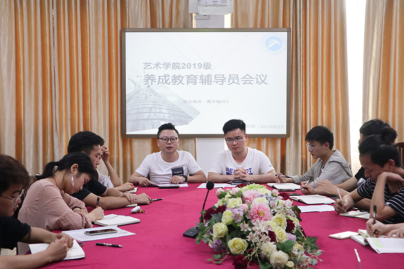 6月27日下午1:30,湖南科技大学艺术学院2019级养成教育辅导员会议在美术楼203会议室召开。学工办主任殷俊、2019级辅导员麻琪方出席本次会议,会议由麻琪方主持,第二十四届主席团成员与2019级养成教育辅导员参加了会议。