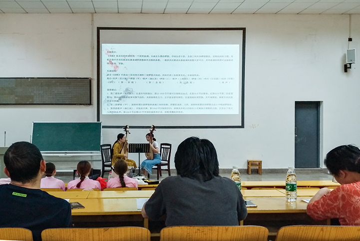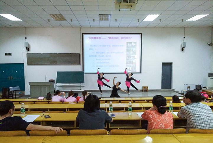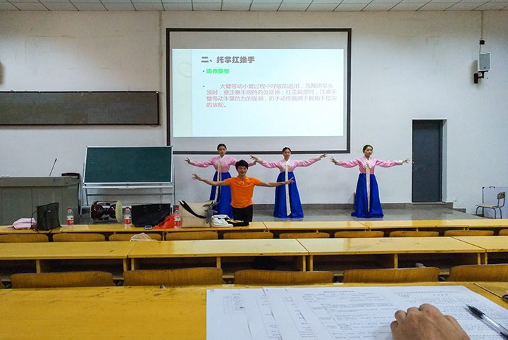 比赛开始,主持人宣读比赛规则与评分细则,随后,7位参赛选手按抽签顺序依次讲课,1号选手龙凯老师以《铜版画》拉开了比赛的帷幕。5号选手袁杰雄老师讲授的《朝鲜族民间舞蹈》中托掌扛推手,讲解、示范、纠正,再和学生在伴奏音乐下一起表演,把比赛推进了高潮。谭欣宜和朱江宏两位老师把《古典舞身韵》这门课程的特征,以及基本的手型和脚位惟妙惟肖的展示给学生和台下的观众,让大家对《古典舞身韵》这门课有无限的向往。这两位教师的授课水平也赢得了评委老师的一致好评。郑先觉老师的《陶艺》课让大家认识到陶艺在中国文化发展中的重要作用以及在世界的影响。谢文静老师的《琵琶》课让大家感受我国民族乐器的魅力。