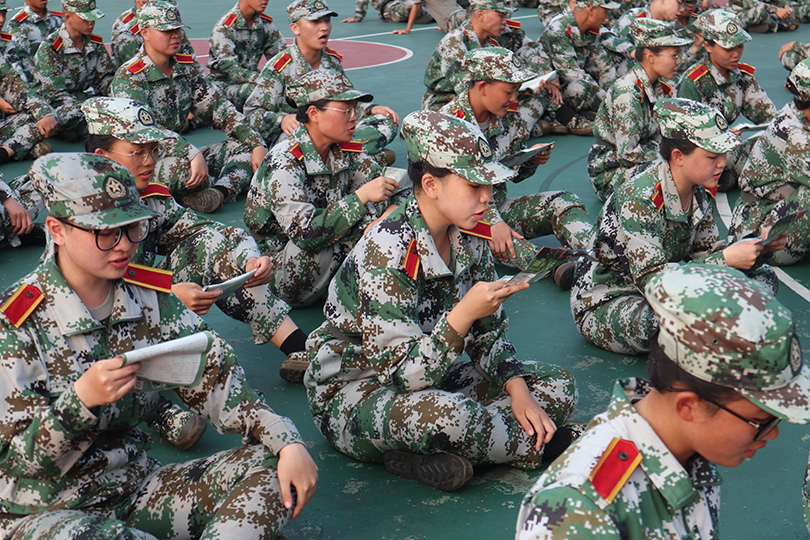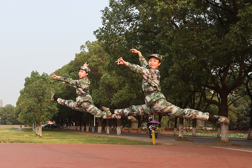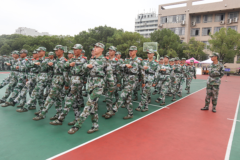 和煦的微风袭来,带来一阵浅浅的倦意。同学们穿着统一的迷彩服,在湛蓝的天空下,接受着训练,一张张稚嫩的面孔已经逐渐呈现成长的坚毅。站军姿、敬礼、踢正步,教官对这些在平常看起来最普通的动作要求也十分严格,同学们屏息静气,努力完成每一个动作任务。经过几天的军旅生活体验,同学们已经渐渐体验到紧张充实的训练任务,从开始的思想涣散、队伍懒散到现在的整齐有序、秩序井然,大家逐渐培养了良好的精神面貌和坚韧的意志品质。