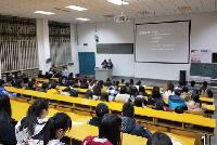 本次活动主题围绕“开创新之门,创精彩未来”让学生们了解了丰富多彩、形式多样的科技创新活动,更好地体验了科技就在我们身边,感受了科技给我们带来的美好与便捷。讲座由张瀚李琳主持,出席本次讲座的领导有殷俊老师,龙睿老师,郑婷婷老师,讲座首先由龙老师发言指出:“同学们要把握好机会,多参加科技比赛,对你们自己的评奖评优以及以后考研、就业都是非常有用的。”随后,卢鑫学长以“四大创业创新”类的科技比赛为例,就以往参赛经验,详细介绍此次科技创新创业比赛应注意要紧贴社会热点、具有创新性、与专业结合、提高理论可行性、增加实践应用效果这六大方面。接着,科技部,学习部成员把九大赛事都一一介绍完毕。期间科技部还准备了有奖竞猜环节,同学们都积极踊跃的参与。最后,郑婷婷老师对比赛论文结构强调一些基本要求,并为大家提出了一些切实可行的参赛策略。