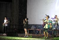 由湖南科技大学吉他协会的特邀嘉宾C4电音乐队进行了开场表演,主唱彭熙焯首先弹奏了一首略带忧愁的曲目《雨一直下》。弹奏的过程中,舞台两侧不断有干冰涌出环绕着C4电音乐队,如梦似幻的舞美效果十分吸睛。随后,一曲《我是一只小小鸟》瞬间点燃全场激情,鼓手葛持中轻快跳跃的鼓点声更使表演趣味性十足。