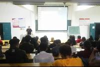屏幕上,孙教授给大家展示了马里兰大学,美国国家美术馆,海军学院的许多雕塑作品,这些作品带给了同学们不一样的心灵震撼。“艺术的本质不是抄袭自然,而是再现自然、高于自然。美国雕塑是以科学为出发点创作雕塑,真实性是它的特点。”孙教授在分析其产生的历史背景后作总结时说。
