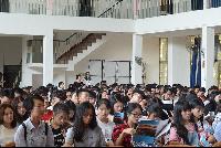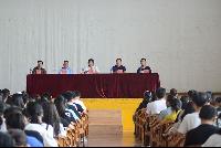 青年优秀教师唐亮作为教师代表发言,他与新生们分享了自己求学和研究的心路历程,勉励同学们珍惜大学四年时光,学会独立思考、开拓视野,做到知行合一、实践实干,真正做到青春无问西东,奋斗自成芳华。研究生胡随作为代表深情地表达了作为一名硕士研究生代表上台发言的荣幸与骄傲,他表示在读研期间将努力成为一名有着坚定理想信念、拥有过硬本领的优秀研究生。本科新生代表杨泠泠同学恳切表达了对大学生活的向往和憧憬,并表示在今后的大学生涯中,将始终坚定理想不断追求,刻苦求学不断探索,修身明德严于律己,成为一名合格的新时代大学生。 随后,18级新生辅导员龙睿老师带领新生们学习了《湖南科技大学学生奖励办法》,向新生介绍了大学生活中所需要注意的事项,包括学习、生活、纪律以及安全问题。在介绍过程中,龙睿老师也表达了她对新生们的期望和祝愿。最后,学工办主任殷俊强调要树立牢固的法纪观念和文明礼貌意识,增强安全防范意识,希望新生们自觉遵守学校的各项规定,做文明、守纪的大学生。