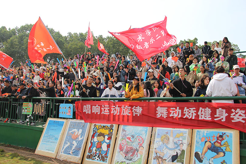 灌之以晨露,耀之以暖阳,慰之以惠风,伴之以星光。花一样的少年风一般的闪过赛场,洒落的汗珠在阳光下泛着温热的晶莹。前方的胜利,身后的对手促使他们加快了脚步,在跑道上划过一道道神采飞扬的身姿。运动员驰骋赛场,奔跑时,他们用尽全力,展现着最好的自己,尽显艺院之子的风采,他们团结前行,互相信任,弘扬了“友谊第一,比赛第二”的体育精神。观众席的同学们热情激昂,挥舞着他们的助威棒,甩动他们手中的拍掌,为选手们撑起了前进的屏障、注入了源源不断的能量。