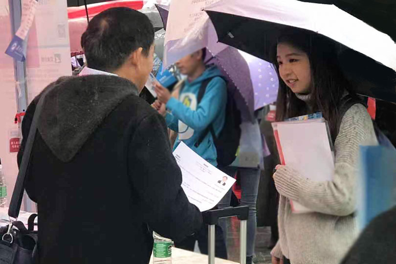 虽然天空中飘着细雨,但我校学子仍然早早地来到了活动现场,就业中心的工作人员积极主动地为每一个来面试有疑问的同学提供最优质的服务,现场各个企业的负责人耐心而详细的为前来咨询的同学介绍他们的工作岗位、工作要求,对同学们进行初步职业指导。同学们纷纷寻找吸引自己的招聘信息,并与相关工作人员积极沟通工作岗位,我院领导、辅导员老师积极组织本学院毕业生参加招聘会,并深入招聘会现场了解情况,加强与企业单位负责人的联系和沟通,积极主动地向用人单位推荐我院优秀的毕业生。在本次招聘会上有幸采访到步步高商业连锁股份有限公司负责人,他表示:“本次招聘旨在挑选、招募高素质人才,通过为其提供快速发展的早期职业生涯和完善的培训计划,从而满足集团对精英人才的需求。只要你想提升自己,我们公司将会给你提供最优秀的平台。”